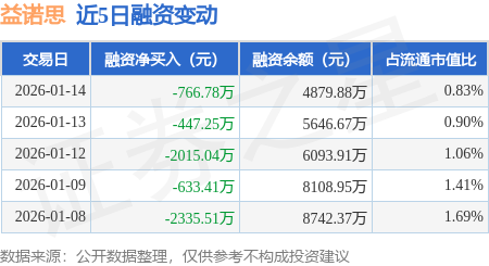 证券之星消息,1月14日,益诺思(688710)融资买入1605.21万元,融资偿还2372.0万元,融资净卖出766.78万元,融资余额4879.88万元。