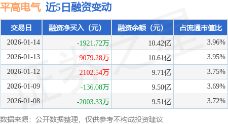 证券之星消息,1月14日,平高电气(600312)融资买入9556.96万元,融资偿还1.15亿元,融资净卖出1921.72万元,融资余额10.42亿元。