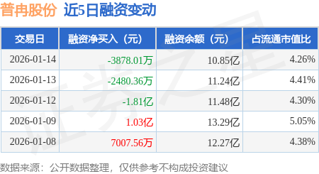 证券之星消息,1月14日,普冉股份(688766)融资买入2.48亿元,融资偿还2.87亿元,融资净卖出3878.01万元,融资余额10.85亿元,近20个交易日中有13个交易日出现融资净买入。
