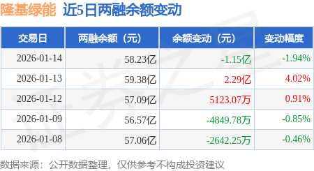 证券之星消息,1月14日,隆基绿能(601012)融资买入4.44亿元,融资偿还5.61亿元,融资净卖出1.17亿元,融资余额58.1亿元。
