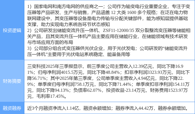 证券之星消息,三变科技1月15日涨停收盘,收盘价21.15元。该股于9点30分涨停,7次打开涨停,截止收盘封单资金为1.31亿元,占其流通市值2.36%。
