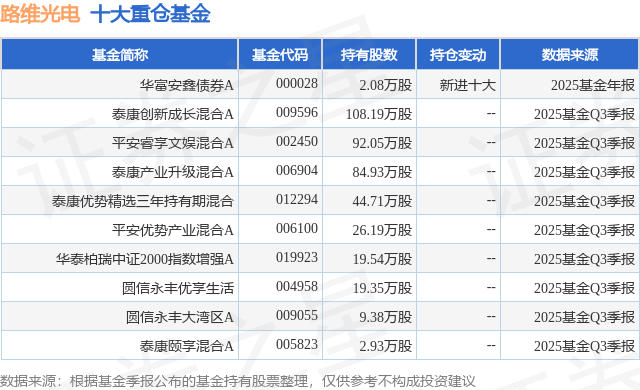 重仓路维光电的前十大公募基金请见下表: