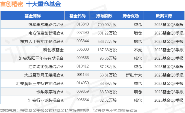 重仓富创精密的前十大公募基金请见下表: