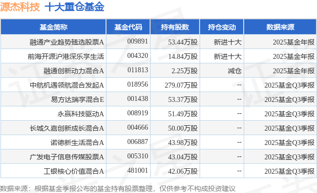 重仓源杰科技的前十大公募基金请见下表: