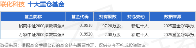 根据2025基金Q3季报公募基金重仓股数据,重仓该股的公募基金共2家,其中持有数量最多的公募基金为招商基金的招商中证2000指数增强A。招商中证2000指数增强A目前规模为5.73亿元,最新净值1.8496(1月14日),较上一交易日上涨0.98%,近一年上涨59.52%。该公募基金现任基金经理为王平 刘浒。王平在任的基金产品包括:招商量化精选股票A,管理时间为2016年3月15日至今,期间收益率为294.41%;招商沪深300指数增强A,管理时间为2017年2月10日至今,期间收益率为88.97%;招商中证红利ETF,管理时间为2019年11月28日至今,期间收益率为105.32%;招商中证光伏产业指数A,管理时间为2021年6月18日至今,期间收益率为-27.32%。刘浒在任的基金产品包括:招商盛合灵活混合A,管理时间为2025年9月22日至今,期间收益率为6.8%;