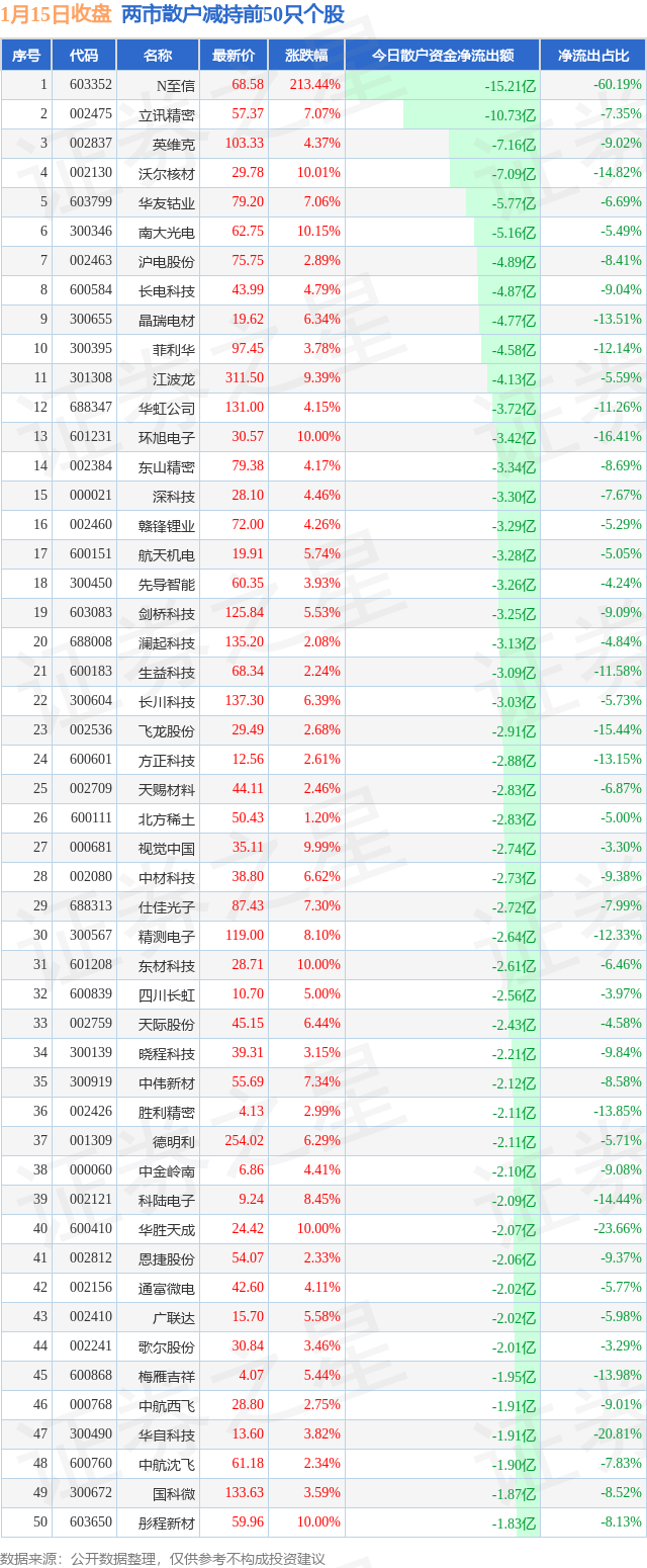 两市散户减持最多的前十只个股为: