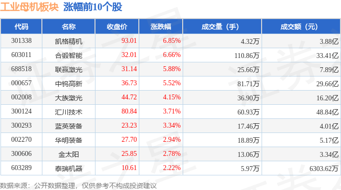 从资金流向上来看,当日工业母机板块主力资金净流出5.41亿元,游资资金净流出4.35亿元,散户资金净流入9.76亿元。工业母机板块个股资金流向见下表: