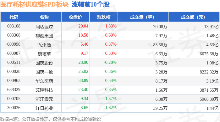 从资金流向上来看,当日医疗耗材供应链SPD板块主力资金净流出5.63亿元,游资资金净流出7911.82万元,散户资金净流入6.42亿元。医疗耗材供应链SPD板块个股资金流向见下表: