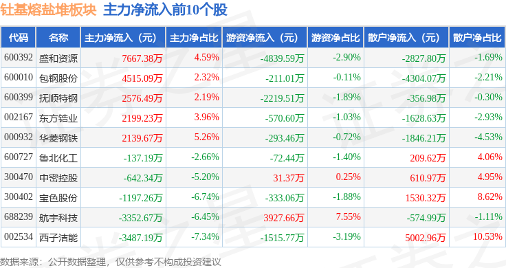 从资金流向上来看,当日钍基熔盐堆板块主力资金净流出14.22亿元,游资资金净流出5757.79万元,散户资金净流入14.79亿元。钍基熔盐堆板块个股资金流向见下表: