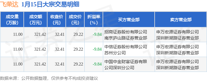 证券之星消息,1月15日飞荣达发生大宗交易,交易数据如下: