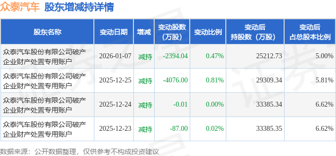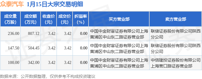 证券之星消息,1月15日众泰汽车发生大宗交易,交易数据如下: