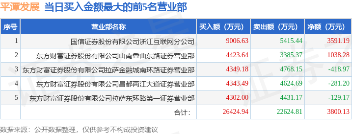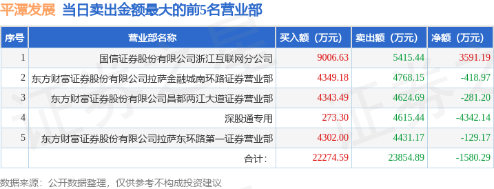 证券之星消息,沪深交易所2026年1月15日公布的交易公开信息显示,平潭发展(000592)因日跌幅偏离值达到7%的前5只证券登上龙虎榜。此次是近5个交易日内第1次上榜。