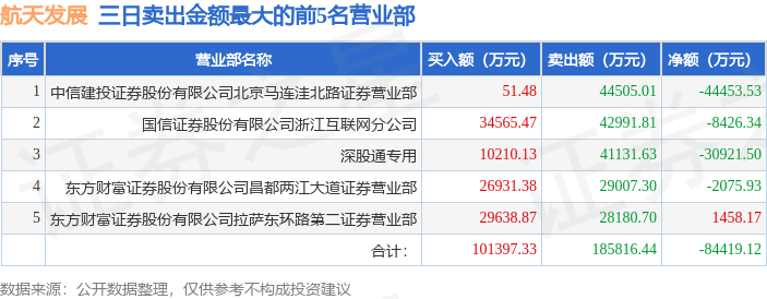 证券之星消息,沪深交易所2026年1月15日公布的交易公开信息显示,航天发展(000547)因连续三个交易日内,跌幅偏离值累计达到20%的证券登上龙虎榜。此次是近5个交易日内第3次上榜。