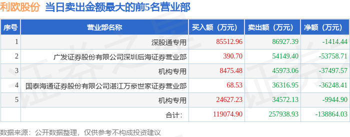 从龙虎榜公布的当日买卖数据来看,机构合计净卖出4.32亿元,北向资金合计净卖出1414.44万元。