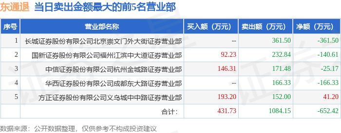 证券之星消息,沪深交易所2026年1月15日公布的交易公开信息显示,东通退(300379)因退市整理期登上龙虎榜。此次是近5个交易日内第5次上榜。
