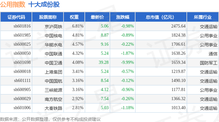 资金流向方面,公用指数(000007)成份股当日主力资金净流出合计24.55亿元,游资资金净流入合计9.49亿元,散户资金净流入合计15.06亿元。成份股资金流向详情见下表: