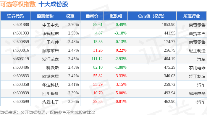 证券之星消息,1月15日,可选等权(000073)指数报收于3562.31点,涨0.09%,成交368.16亿元,换手率1.91%。当日该指数成份股中,上涨的有26家,四川长虹以5.0%的涨幅领涨,下跌的有23家,永辉超市以3.18%的跌幅领跌。