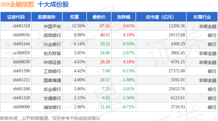 300金融(000914)指数十大成份股详情如下: