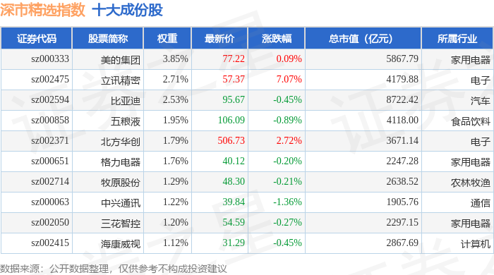 深市精选(399013)指数十大成份股详情如下: