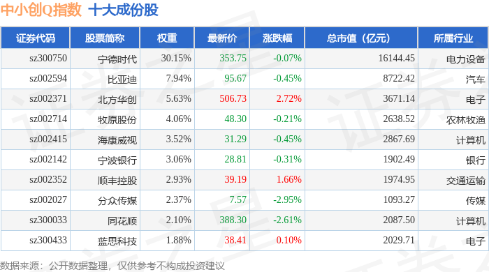 中小创Q(399294)指数十大成份股详情如下: