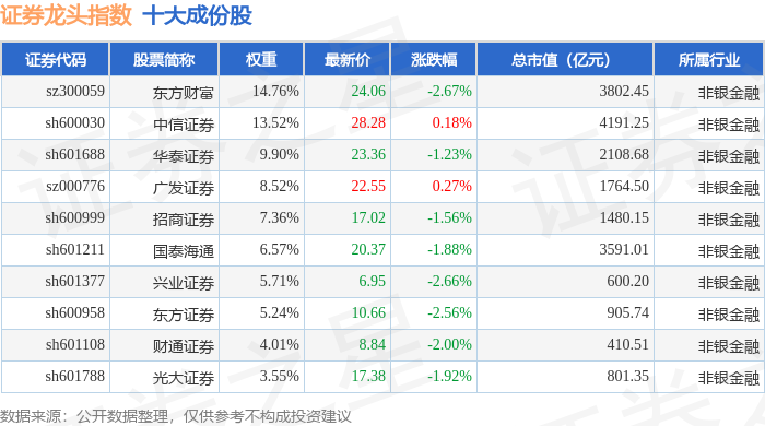 资金流向方面,证券龙头(399437)指数成份股当日主力资金净流出合计32.82亿元,游资资金净流入合计12.58亿元,散户资金净流入合计20.25亿元。成份股资金流向详情见下表: