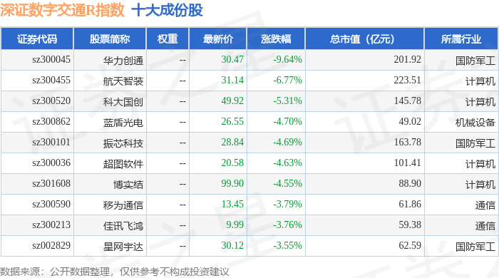 深证数字交通R(470049)指数十大成份股详情如下: