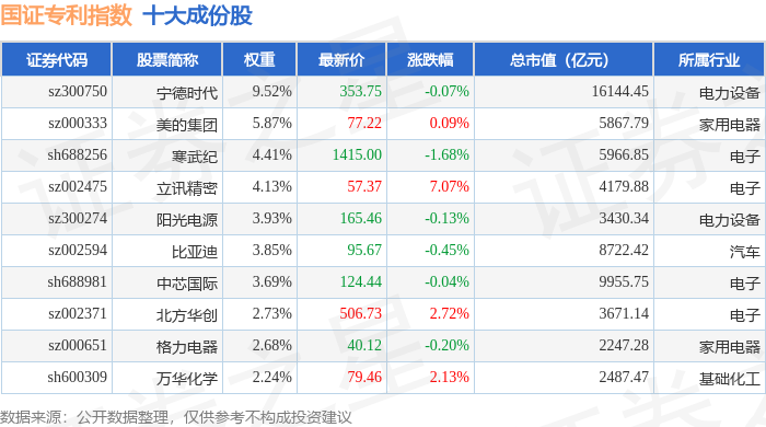 国证专利(980070)指数十大成份股详情如下: