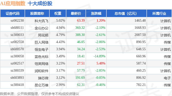 证券之星消息,1月15日,AI应用(980112)指数报收于1997.97点,跌2.15%,成交1420.06亿元,换手率8.59%。当日该指数成份股中,上涨的有13家,广联达以5.58%的涨幅领涨,下跌的有37家,易华录以19.98%的跌幅领跌。