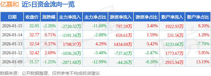 证券之星消息,截至2026年1月15日收盘,亿嘉和(603666)报收于32.05元,下跌2.2%,换手率3.55%,成交量7.29万手,成交额2.35亿元。