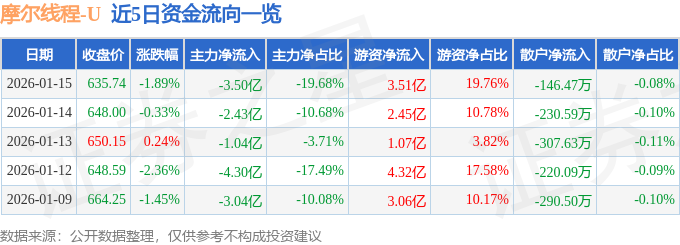 证券之星消息,截至2026年1月15日收盘,摩尔线程(688795)报收于635.74元,下跌1.89%,换手率9.57%,成交量2.81万手,成交额17.78亿元。