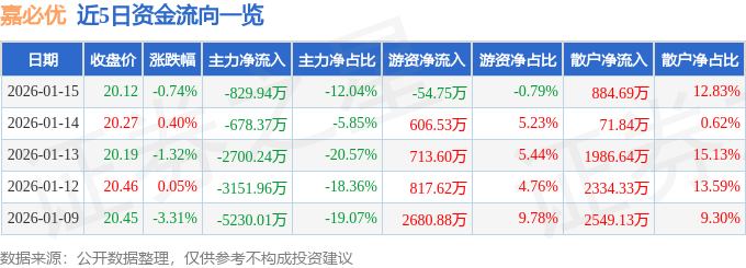 证券之星消息,截至2026年1月15日收盘,嘉必优(688089)报收于20.12元,下跌0.74%,换手率2.03%,成交量3.42万手,成交额6893.68万元。