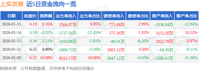 证券之星消息,截至2026年1月15日收盘,上实发展(600748)报收于6.19元,上涨0.16%,换手率2.24%,成交量41.24万手,成交额2.58亿元。
