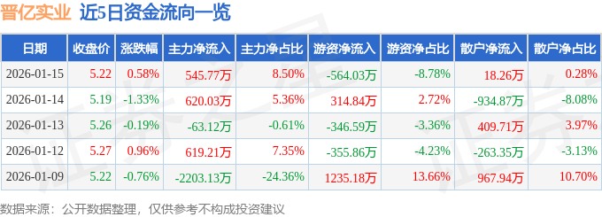 1月15日的资金流向数据方面,主力资金净流入545.77万元,占总成交额8.5%,游资资金净流出564.03万元,占总成交额8.78%,散户资金净流入18.26万元,占总成交额0.28%。