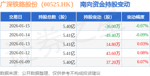证券之星消息,1月15日南向资金减持36.0万股广深铁路股份(00525.HK)。近5个交易日中,获南向资金增持的有3天,累计净增持10.2万股。近20个交易日中,获南向资金增持的有10天,累计净增持107.2万股。截至目前,南向资金持有广深铁路股份(00525.HK)5.4亿股,占公司已发行普通股的37.73%。