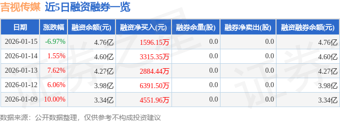 吉视传媒融资融券信息显示,融资方面,当日融资买入1.46亿元,融资偿还1.3亿元,融资净买入1596.15万元,连续3日净买入累计7795.93万元。融券方面,融券卖出0.0股,融券偿还0.0股,融券余量0.0股,融券余额0.0万元。融资融券余额4.76亿元。