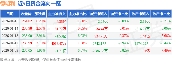 证券之星消息,截至2026年1月15日收盘,德明利(001309)报收于254.02元,上涨6.29%,换手率9.34%,成交量15.02万手,成交额36.9亿元。