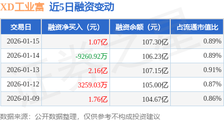证券之星消息,1月15日,XD工业富(601138)融资买入9.07亿元,融资偿还8.0亿元,融资净买入1.07亿元,融资余额107.3亿元,近20个交易日中有12个交易日出现融资净买入。