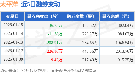 证券之星消息,1月15日,太平洋(601099)融资买入1.89亿元,融资偿还1.55亿元,融资净买入3434.15万元,融资余额26.37亿元。