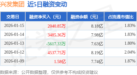 证券之星消息,1月15日,兴发集团(600141)融资买入1.52亿元,融资偿还1.32亿元,融资净买入2040.85万元,融资余额8.18亿元。