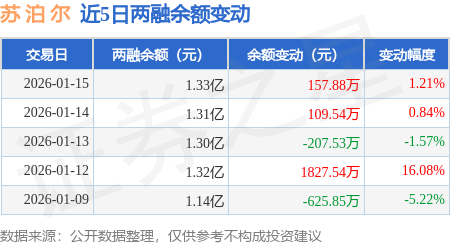 证券之星消息,1月15日,苏 泊 尔(002032)融资买入855.46万元,融资偿还699.31万元,融资净买入156.15万元,融资余额1.31亿元,近20个交易日中有15个交易日出现融资净买入。