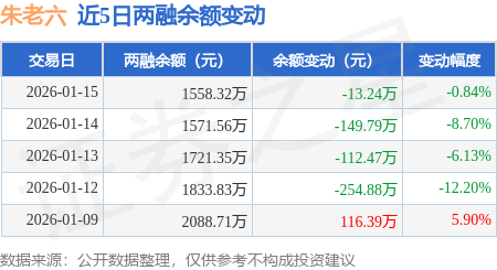 证券之星消息,1月15日,朱老六(920726)融资买入413.72万元,融资偿还426.96万元,融资净卖出13.24万元,融资余额1558.32万元,近20个交易日中有11个交易日出现融资净买入。