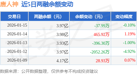 证券之星消息,1月15日,唐人神(002567)融资买入949.67万元,融资偿还988.16万元,融资净卖出38.49万元,融资余额3.96亿元。