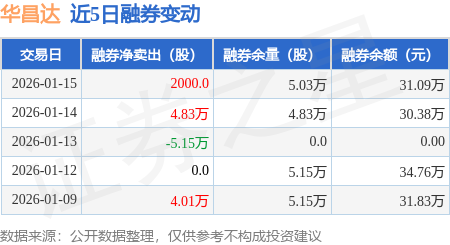 融券方面,当日融券卖出2000.0股,融券偿还0.0股,融券净卖出2000.0股,融券余量5.03万股。