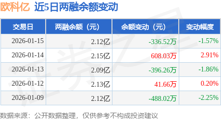 证券之星消息,1月15日,欧科亿(688308)融资买入1544.59万元,融资偿还1881.22万元,融资净卖出336.63万元,融资余额2.11亿元。