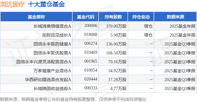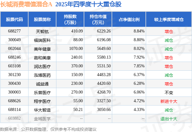根据2025基金年报公募基金重仓股数据,重仓该股的公募基金共2家,其中持有数量最多的公募基金为长城基金的长城消费增值混合A。长城消费增值混合A目前规模为5.16亿元,最新净值1.3465(1月15日),较上一交易日下跌3.07%,近一年上涨44.1%。该公募基金现任基金经理为龙宇飞。