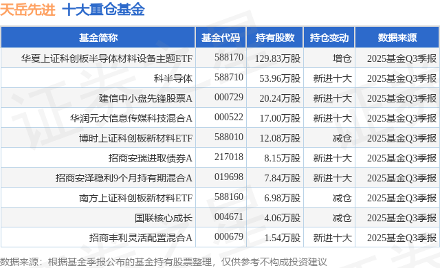 重仓天岳先进的前十大公募基金请见下表: