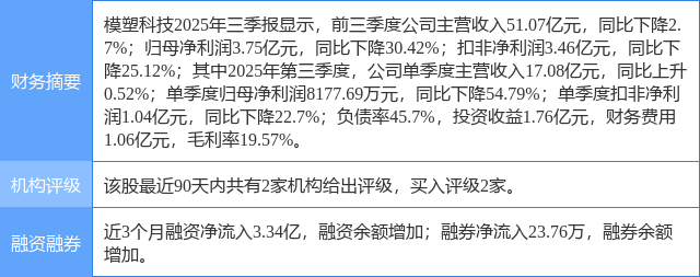 2025年12月25日,华鑫证券研究员林子健发布了对模塑科技的研报《公司深度报告:汽车保险杠龙头企业,开辟人形机器人轻量化新市场》,该研报对模塑科技给出“买入”评级。研报中预测公司2025-2027年收入分别为79.0/87.3/96.6亿元,归母净利润分别为4.7/6.1/7.1亿元。公司汽车保险杠等主营业务稳健发展,频繁接到头部客户项目定点,持续开拓人形机器人业务新领域,业绩有望逐步增长,维持“买入”投资评级。证券之星数据中心根据近三年发布的研报数据计算,该研报作者对此股的盈利预测准确度为63.69%。