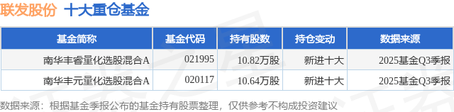 重仓联发股份的公募基金请见下表: