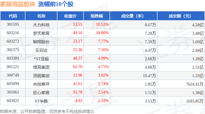 从资金流向上来看,当日家居用品板块主力资金净流出3.35亿元,游资资金净流入2.04亿元,散户资金净流入1.31亿元。家居用品板块个股资金流向见下表: