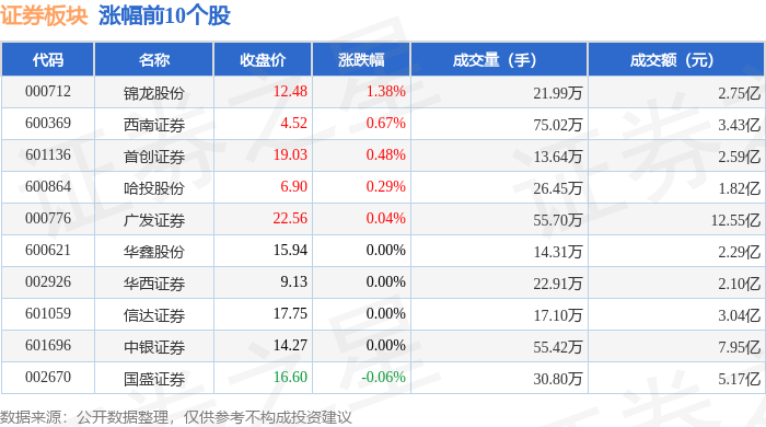 证券之星消息,1月16日证券板块较上一交易日下跌0.84%,华林证券领跌。当日上证指数报收于4101.91,下跌0.26%。深证成指报收于14281.08,下跌0.18%。证券板块个股涨跌见下表:
